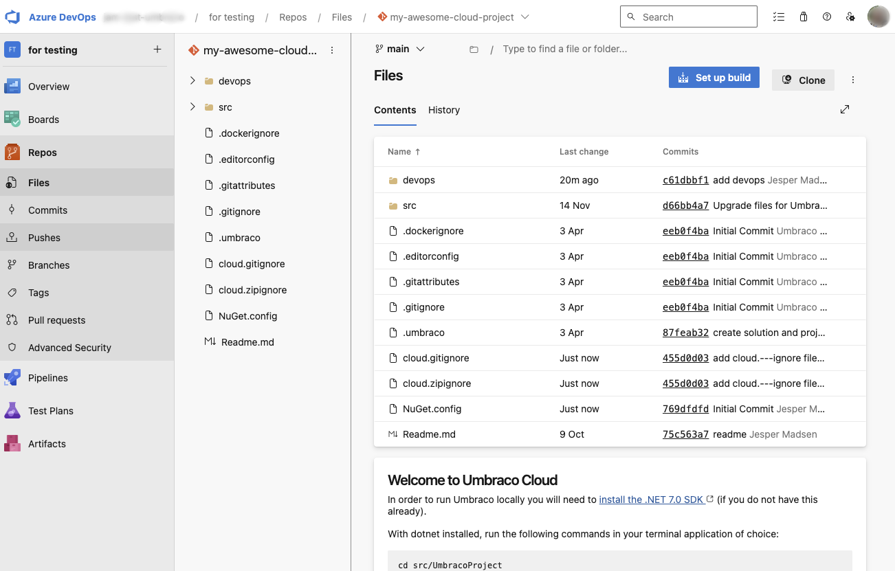 When you click on "Save and Run", your first deployment will be triggered. This means Azure DevOps is set up with all the required information to deploy your Cloud project back to Umbraco Cloud.