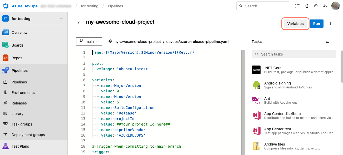 <figure><img src="https://3739769070-files.gitbook.io/~/files/v0/b/gitbook-x-prod.appspot.com/o/spaces%2FPzKn70Piyd2fd5UkYZGf%2Fuploads%2Fgit-blob-e2aa8336d82413d5ec8ac025ef00bafae2256e89%2Fazdevops-pipeline-variables.png?alt=media" alt=""><figcaption><p>Pipeline variables in Azure DevOps</p></figcaption></figure>
