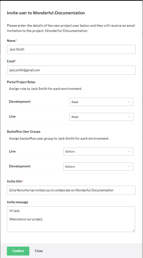 When adding a user, the default permission is Read for each environment. You can assign backoffice user groups to the user for each environment.