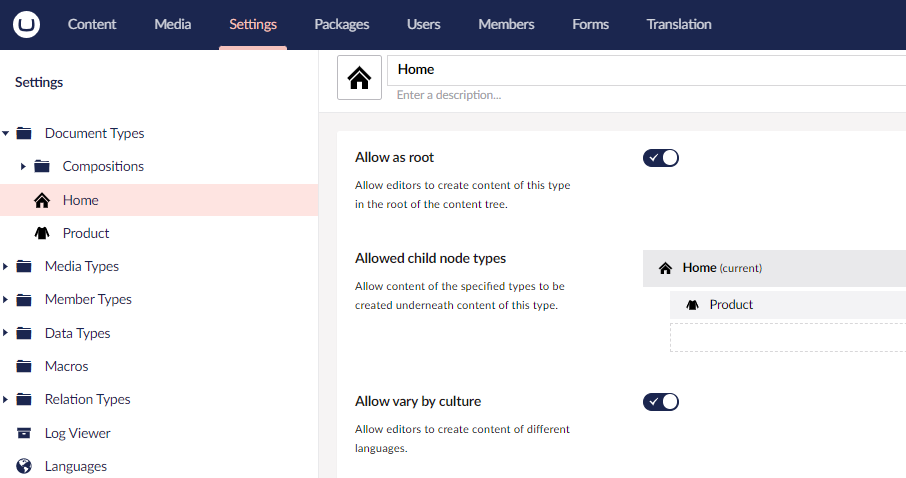 Now that there are two languages to vary the content with, it needs to be enabled on the Document Types. To do so:
