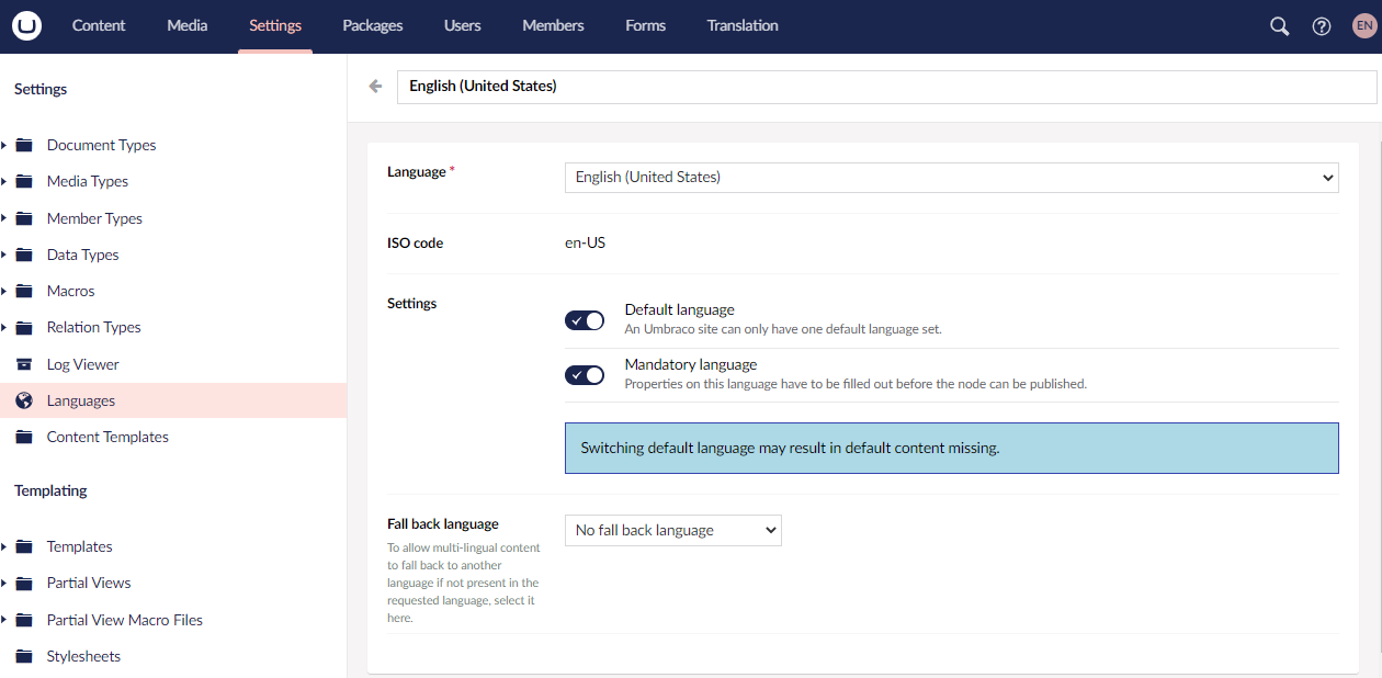 6. Select a **Fallback Language** from the drop-down list.