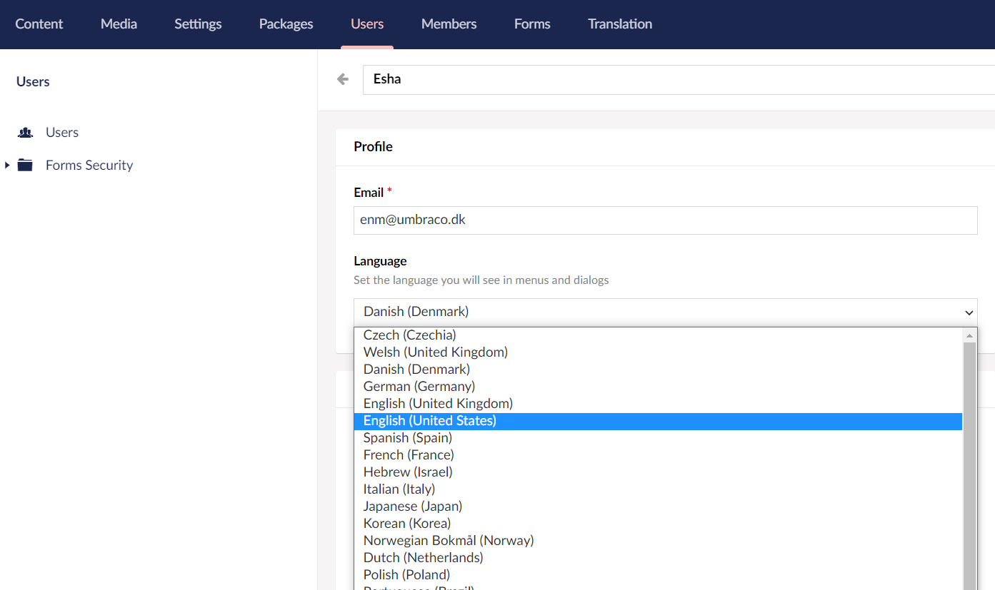 We can add multiple languages depending on our website requirements. In the previous step, we have already set Danish as our default language. We will now set-up English and German as our variants for this tutorial.