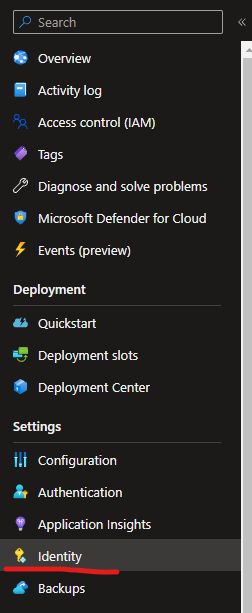 Head over to your Azure Web App and find Identity under Settings: