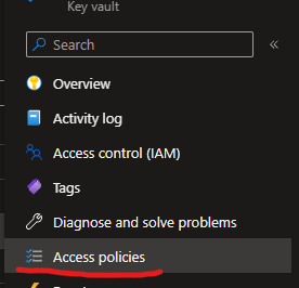 It is assumed you already have a Key Vault set up with a few Umbraco secrets inside. In your Key Vault head to Access Policies.