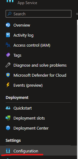In your Azure Web App head to Configuration under Settings.