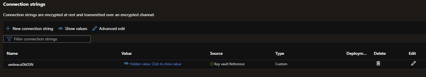 Under Connection Strings, select Advanced Edit.