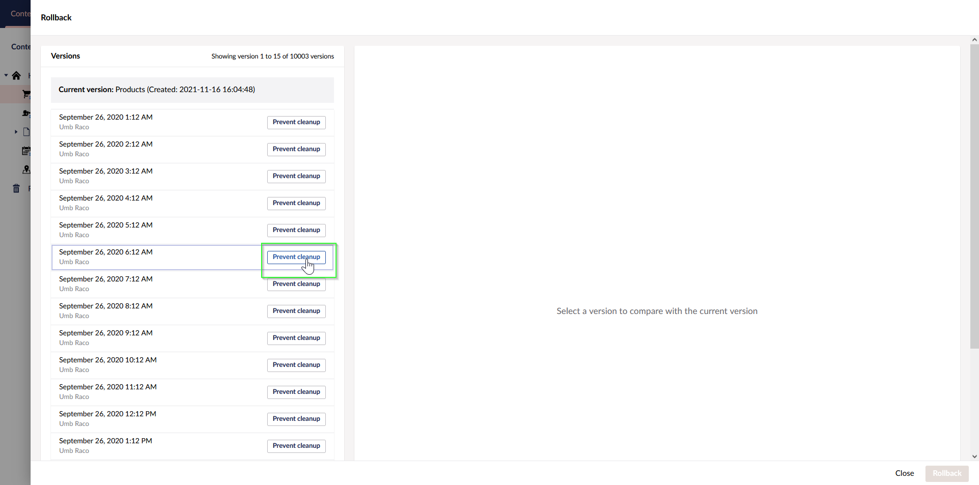 It is possible to mark important content versions as "prevent cleanup" to ensure they are never removed. This happens via the new and improved rollback modal which can be found on the "info" content app for each document.