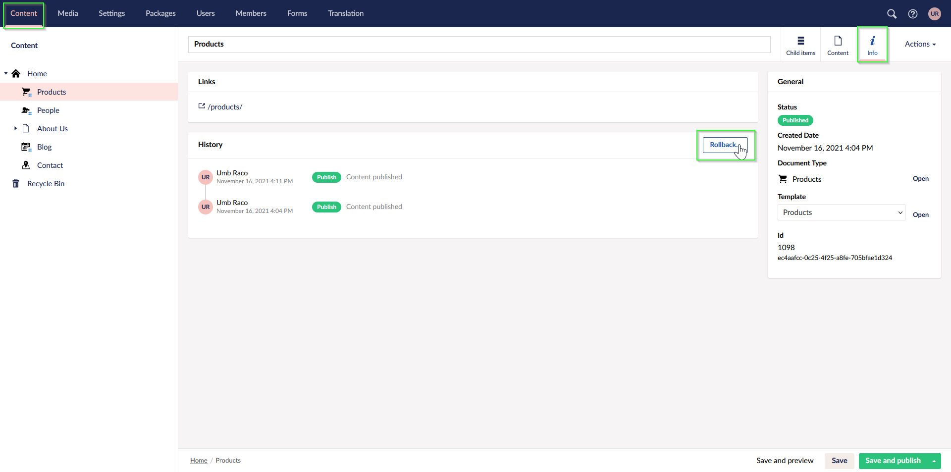 Based on the default cleanup policy, you can roll back content to the latest version saved on a particular day as long as it was