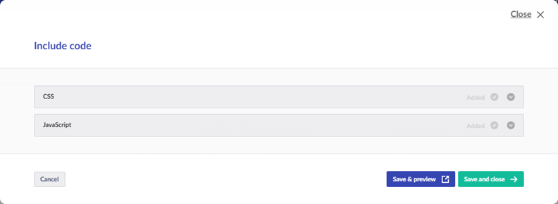 1. Click **Include CSS/JavaScript** in **Add/Edit code.**