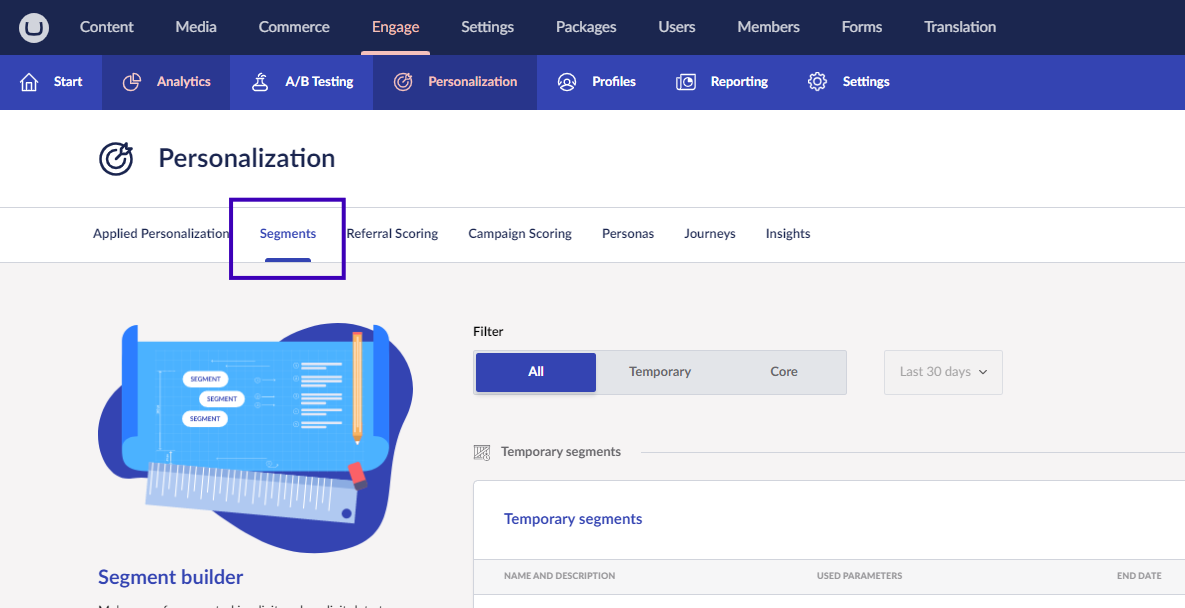 3. Select **Personalization** **->** **Segments**.